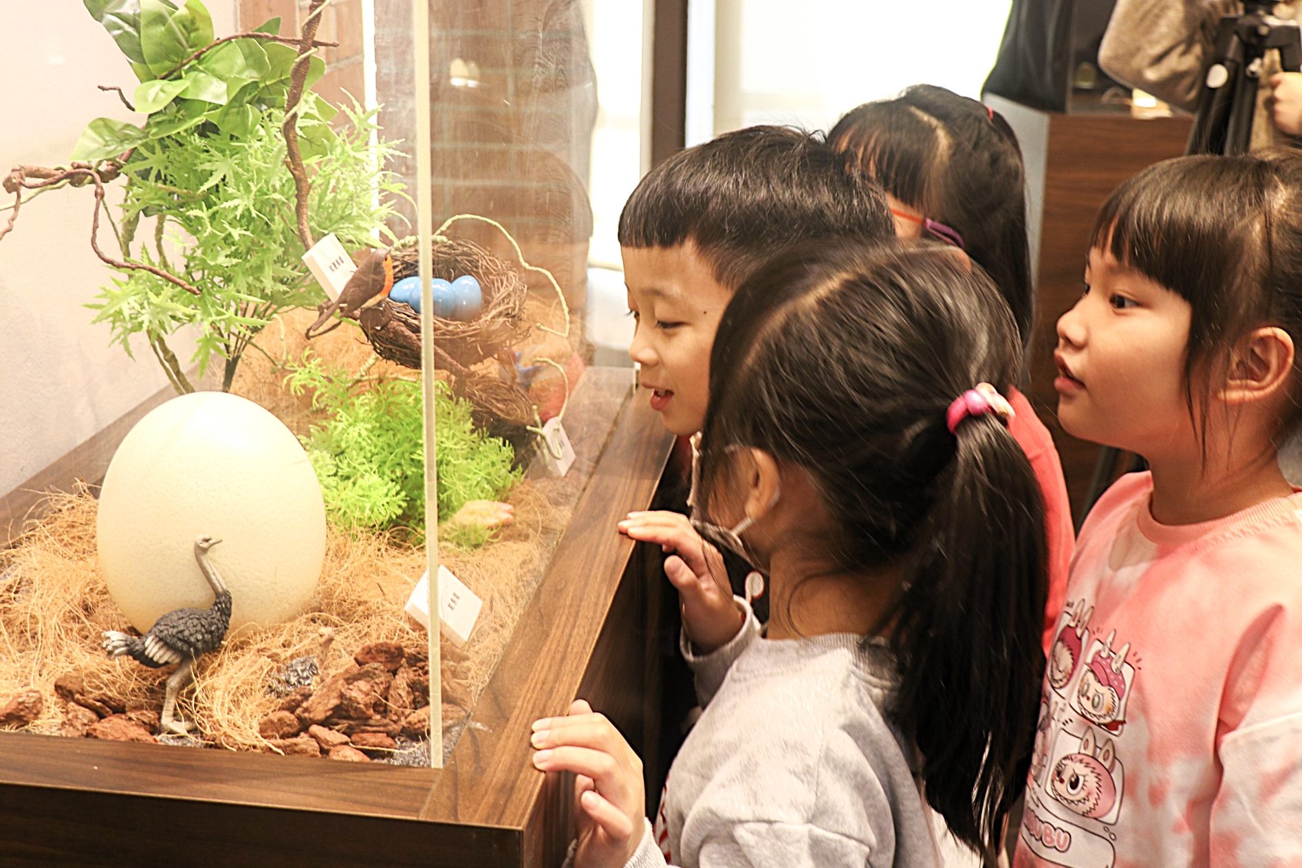展覽亦規劃「鳥類與爬蟲類的蛋」主題展區,介紹不同動物因應生活環境所發展出的蛋殼結構、形狀與保護方式,透過清楚、易於理解的展示設計,讓孩子在沒有艱深專業術語的情況下,自然認識演化概念,培養尊重生命與環境的態度。