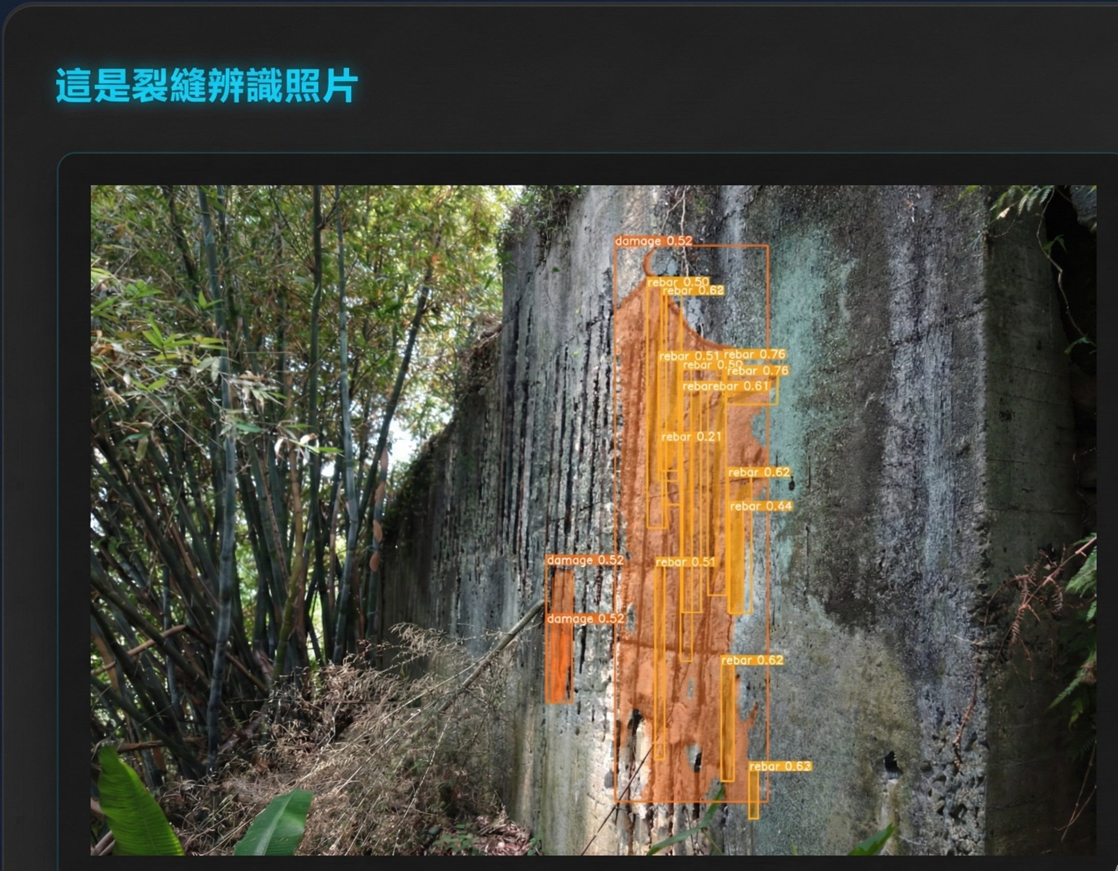 「AI擋土牆辨識平台」:https://thchiu.irmp.tw/ai_inspection_crack_demo/web
