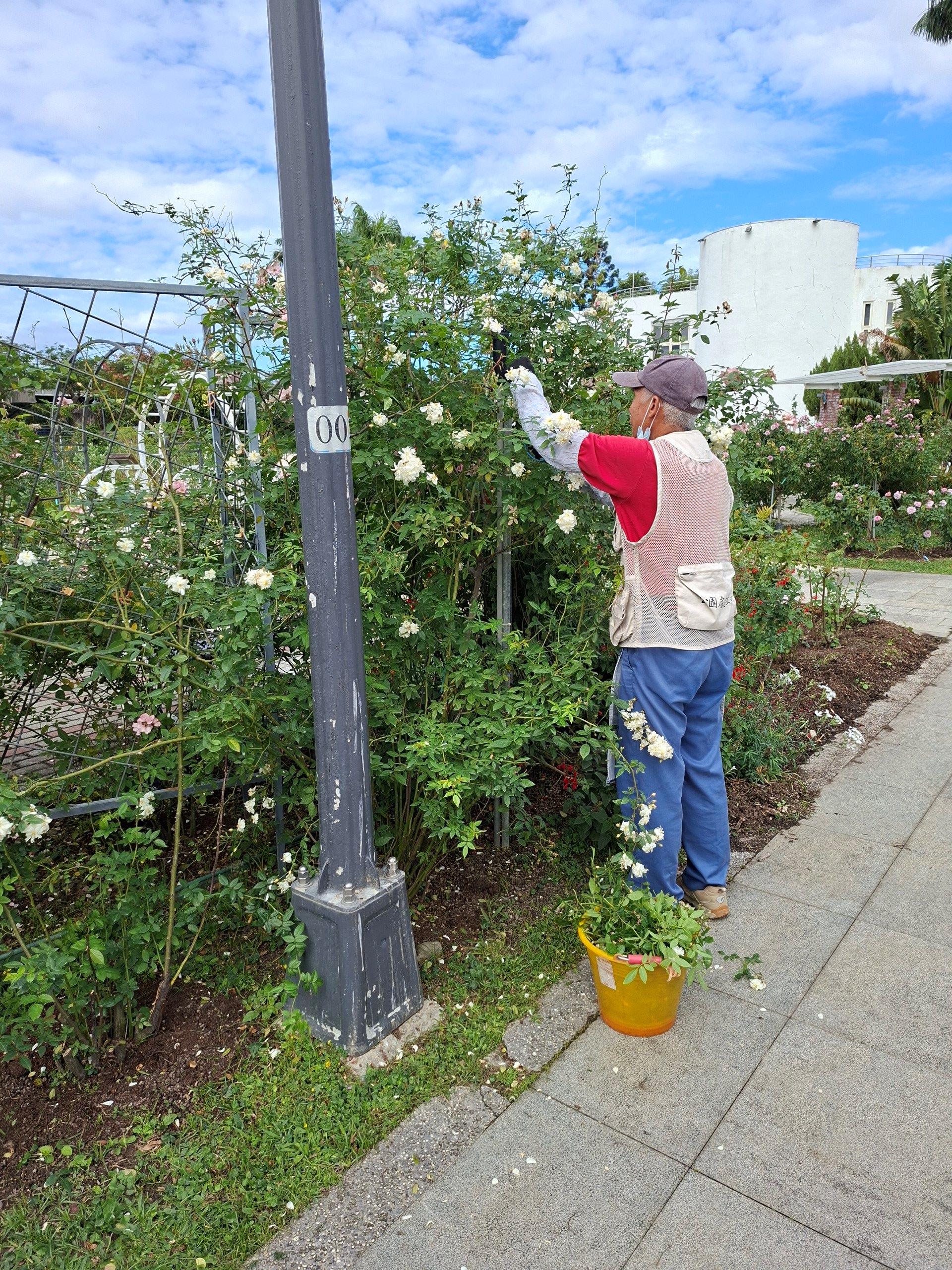 志工陳培光分享,自己過去常到臺北玫瑰園運動,退休後選擇成為志工,希望能用行動回饋這片熟悉的綠地。「拈花惹草其實很舒壓,連我長期失眠的症狀都改善了。」他笑著說,遵從內心、保持心情愉快並常懷感激,是健康快樂享受退休生活的關鍵。對他而言,修剪玫瑰就像人生縮影,看似平凡的枝條,花芽生長後卻能在瞬間綻放,只要用心,處處都藏著驚喜。
