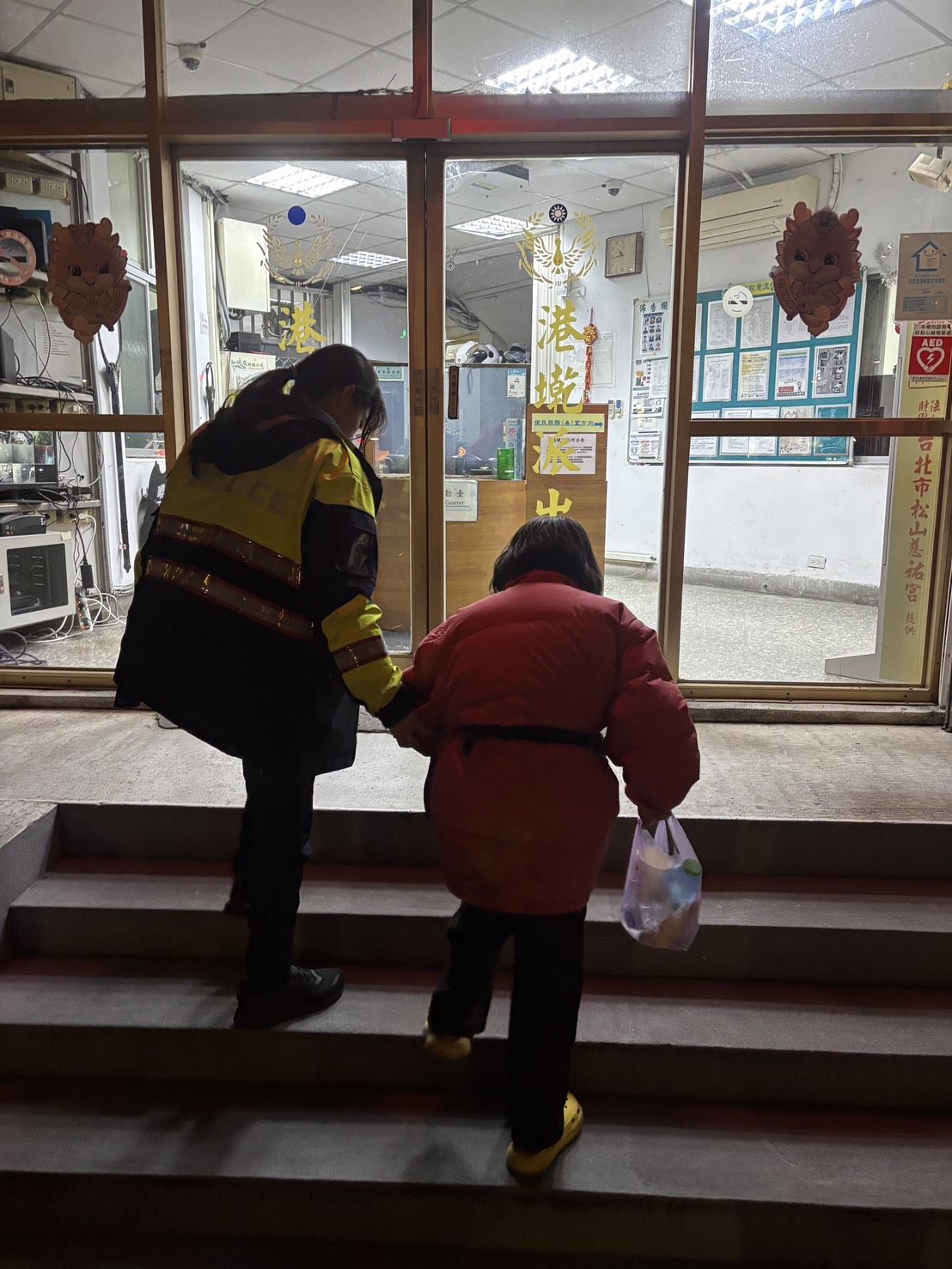 日前夜間氣溫偏低,內湖分局港墘派出所員警執行巡邏勤務時,接獲民眾通報,指港墘路某公寓樓梯間內有一名年長婦人疑似迷途徘徊,神情不安,亟需警方到場協助。